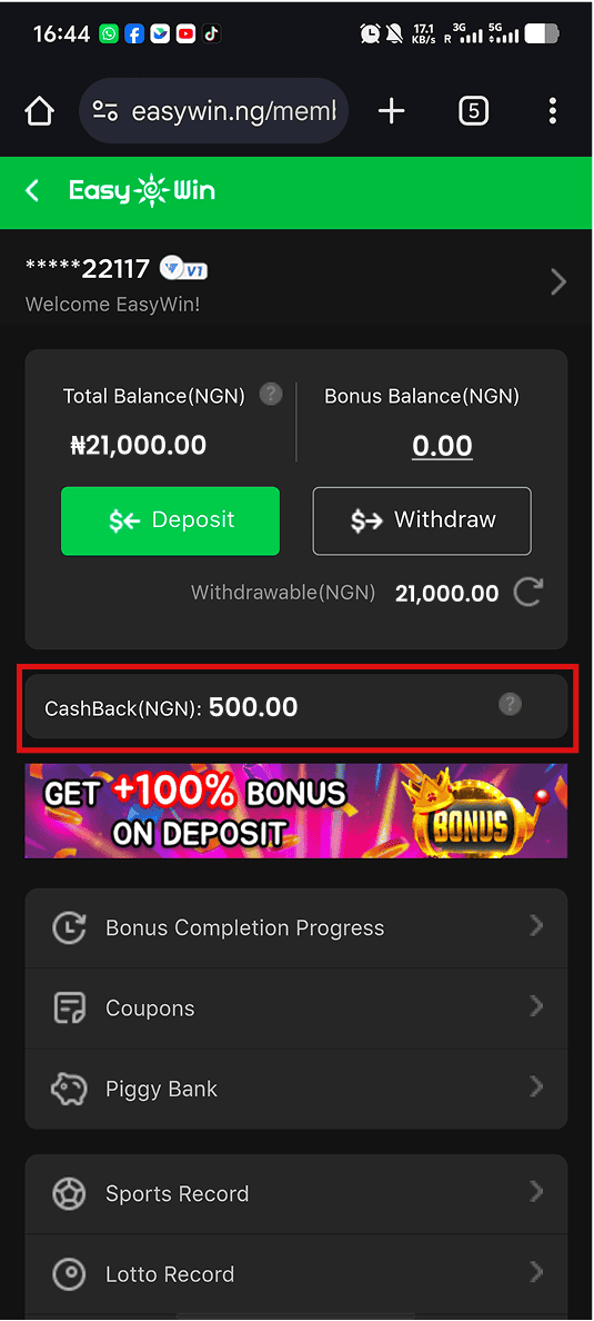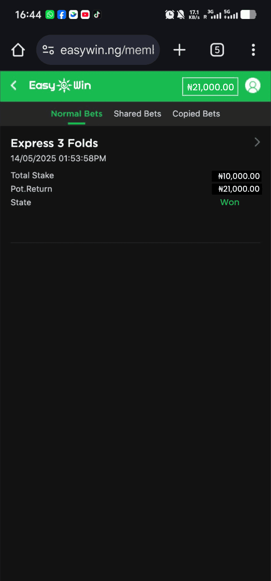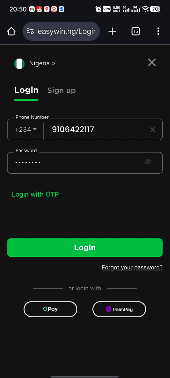 Visit https://easywin.co.zm/login and login to easywin. If you don't have an account create one and then login to easywin.